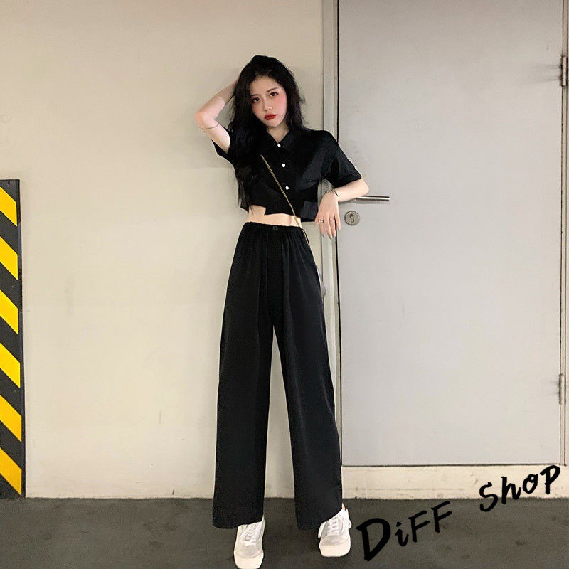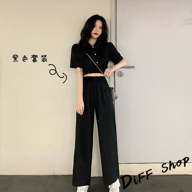 【DIFF】韓版氣質小個子顯瘦短版上衣+寬褲 兩件套裝 短袖上衣 短袖t恤 褲子 長褲 休閒褲【S120】