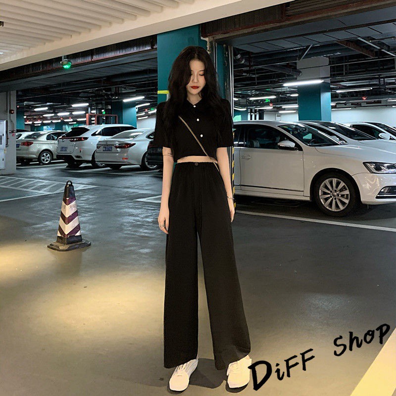 【DIFF】韓版氣質小個子顯瘦短版上衣+寬褲 兩件套裝 短袖上衣 短袖t恤 褲子 長褲 休閒褲【S120】