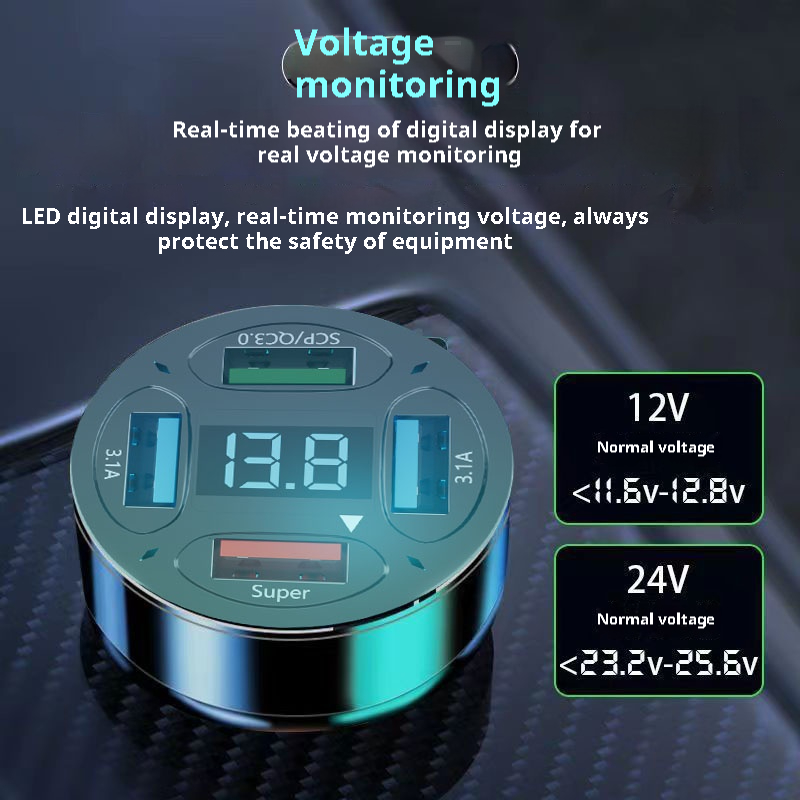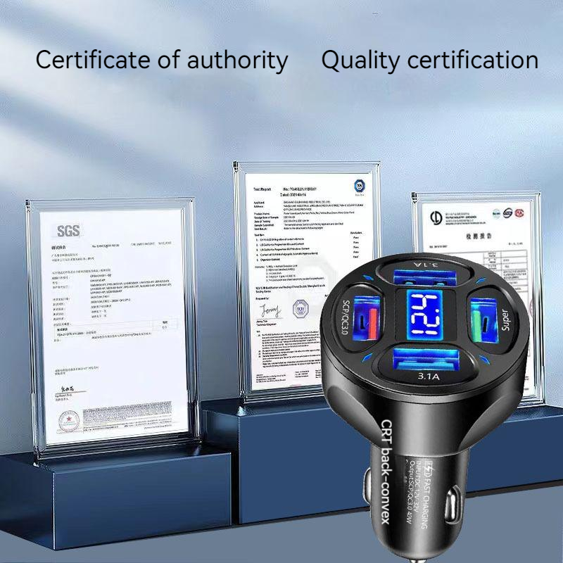 66W Car Charger 4USB Port Digital Display Super Fast Charging