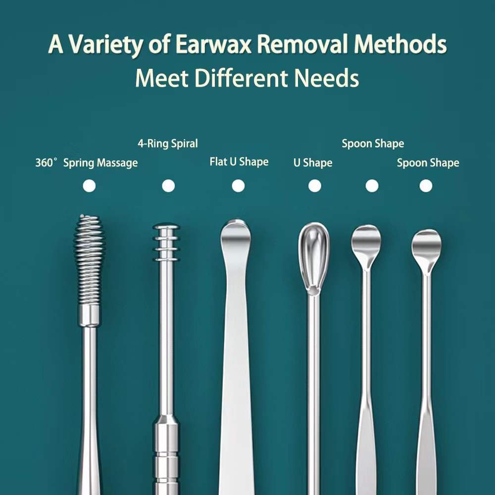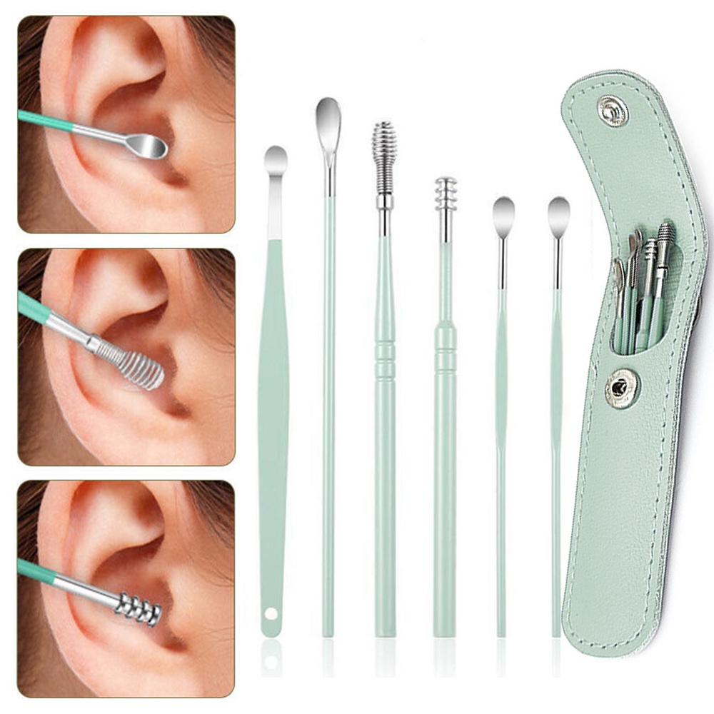 6Pcs/set Portable Multifunctional Ear Wax Remover Ear Cleaning Kit Ear Pick Earpick Ear Cleaner Spoon Care Ear Clean Tools
