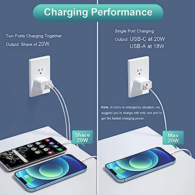 • 【What You Get】2 X 20W Dual Port USB C / USB A Fast Wall Charger.Buy this product you can get USB C Wall Charger Block LIFETIME-WARRANTY,and 7*24-hours Friendly Customer Service,If there is any problem,please feel free to contact the seller.