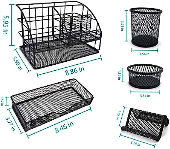 • Multi-usage with Creativity: Desk organization uses metal mesh finish design, simple and stylish, easily match other office accessories and surrounding decorations. It is suitable for home, office, classroom, studio, etc; Nice on desktop, living room, bedroom dresser, coffee table, etc.
