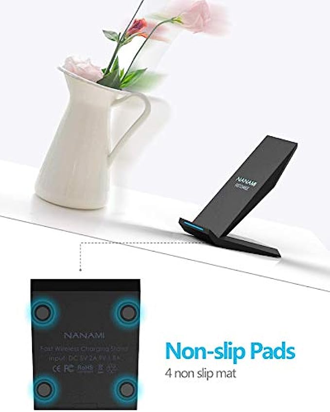 INTELLIGENT LED INDICATOR- Multi-colored LED lights indicate charging status. Solid blue for standby mode, green for charging mode). Blue LED indicator will flash in 1s/time if your phone is not properly aligned or any metal attachment detected! One-year Warranty if you got any problems about the wireless charger you got from NANAMI. (Just simply drop us an email with your order number and we will give you the best solution as your wishes. )