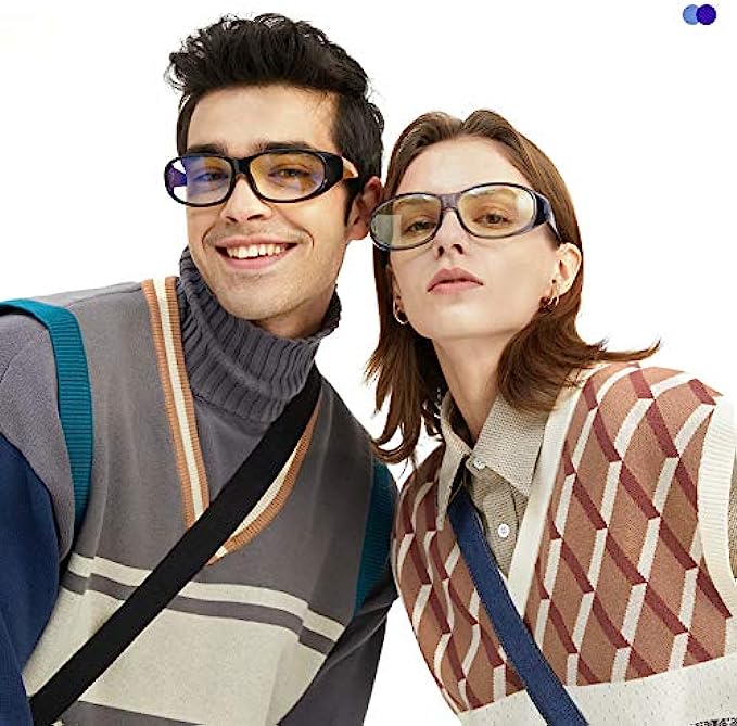 • EXCLUSIVE PATENT TAC LENS - High Transmittance, Low Color Aberration. Exclusive patent layers lamination technique with slight tinted lenses, cuts High-Energy Blue Light to minimize Digital Eye Strain. TAC lens can not only block harmful blue ray, 99.9% UVA & UVB Protection, also with 93% high transmittance, providing a prefect BLANCE between eye protection and visual experience.