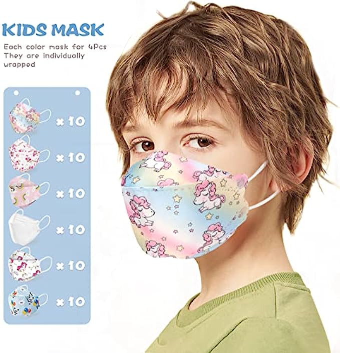 LOGAO【60 Packs Individually Packaged】 of KF94 Disposable Fish Mouth Type Child Safety Four-Layer Protective mask, Kids Disposable Face Masks Comfortable Breathable ,and Protection Rate of 95% ,Suitabl
