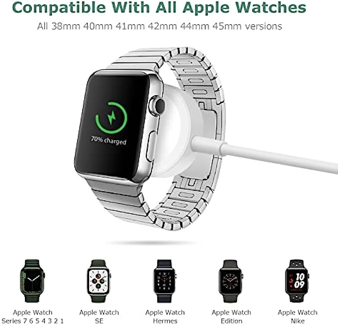 【Fast Efficient Charger】This watch charger offers original fast charging speed for your watch series 1/2/3 in 2 hours and 3 hours for series 4/5/6/7. Note: Please take off the watch case and use a 5V/1A adapter or original adapter for better charging.