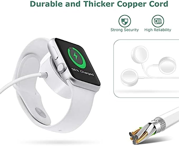 【Upgrade Material】The watch charger cable is made of high quality materials, to ensure excellent charging performance and stable connection, reliable bending test for longer life, more durability.