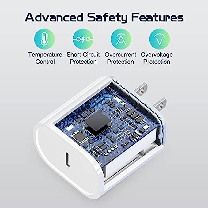 • Excellent safety fast charging: Juusmart 20W lightning charger has multipotent safety system ensures complete protection for your lightning devices. The ETL certified wall charger built-in over-voltage protection, features a stable voltage. Lightning cable built-in smart chip to match the current required by devices automatically to protect your iPhone/iPad from overcurrent, overvoltage, short circuit and overheating.