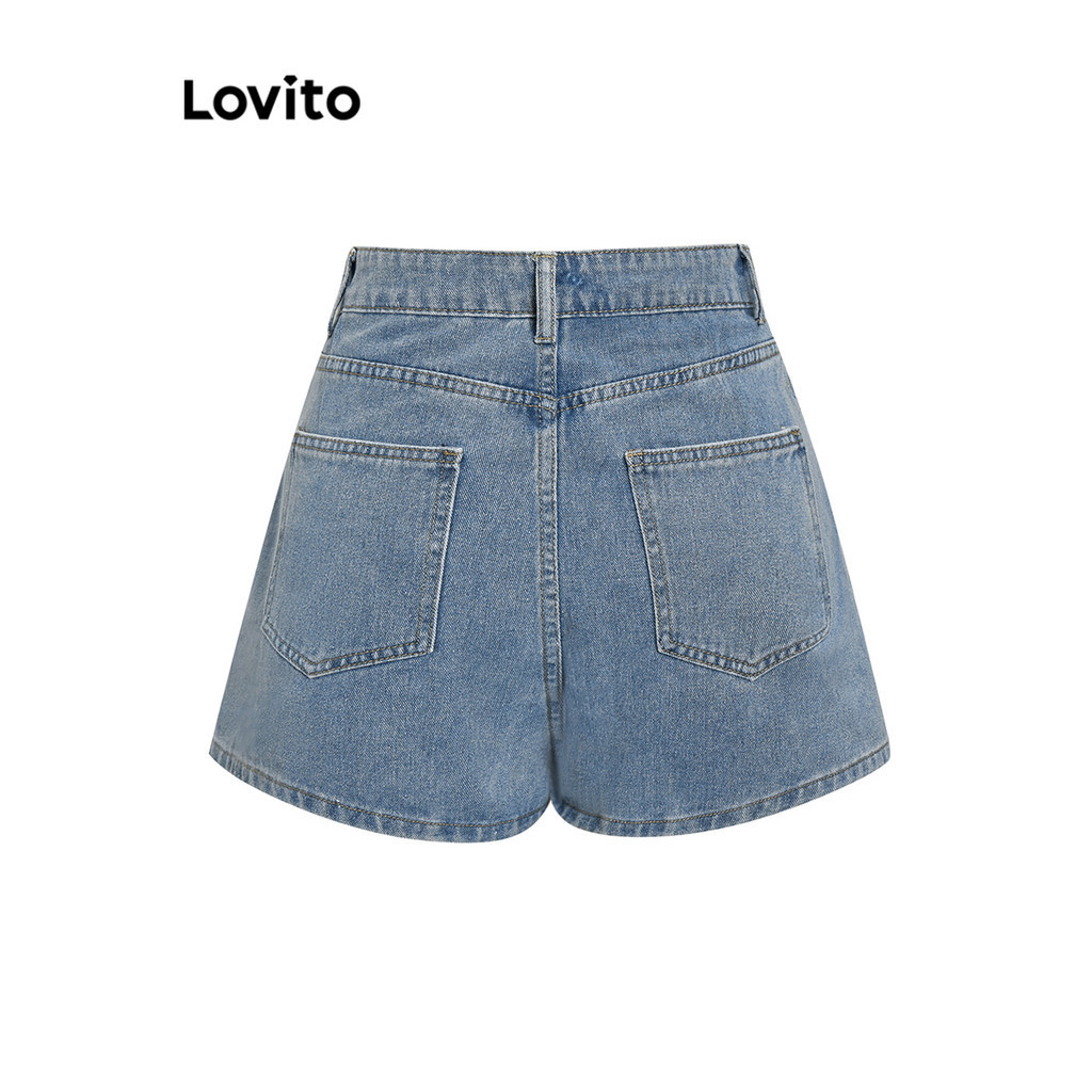 Lovito Casual Plain Pocket Denim Shorts for Women LNA19020 (Multi-color)