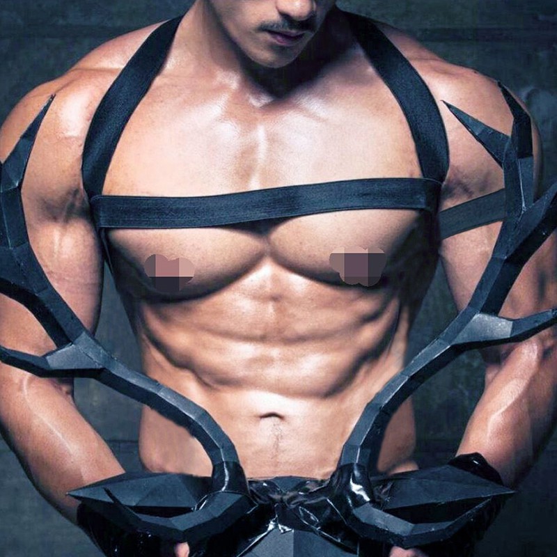 Mens Elastic Chest Muscle Harness Belt Sexy Chest Belt Hollow Out Nightclub Clothing