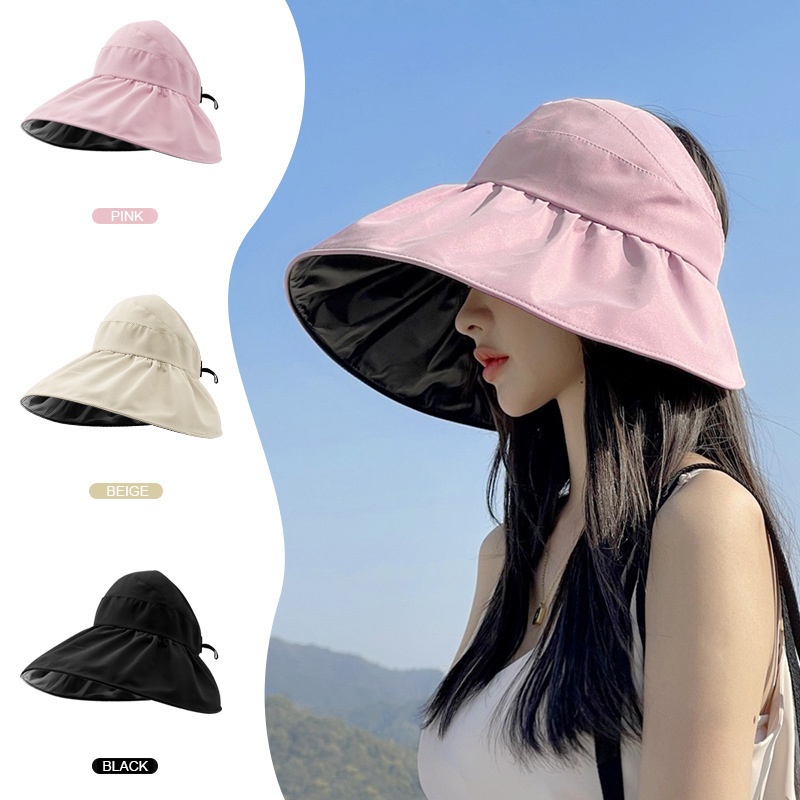 Summer Women Big Brim Foldable Sunhat Vinyl Layer Empty Top Hat Fashion Outdoor Sun Protection Sunscreen Hats